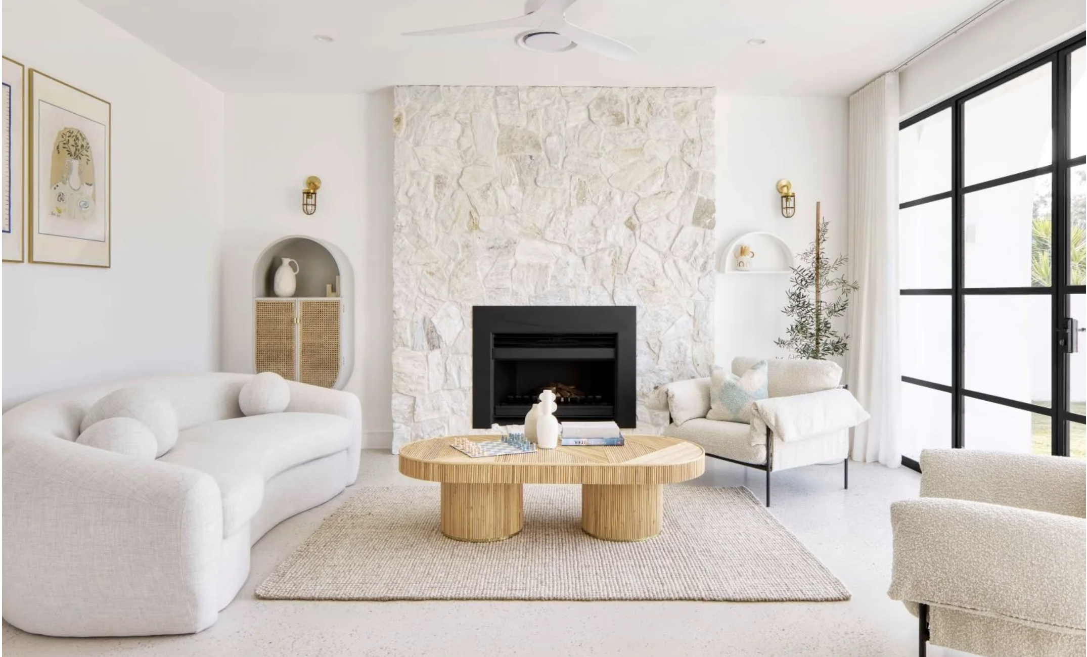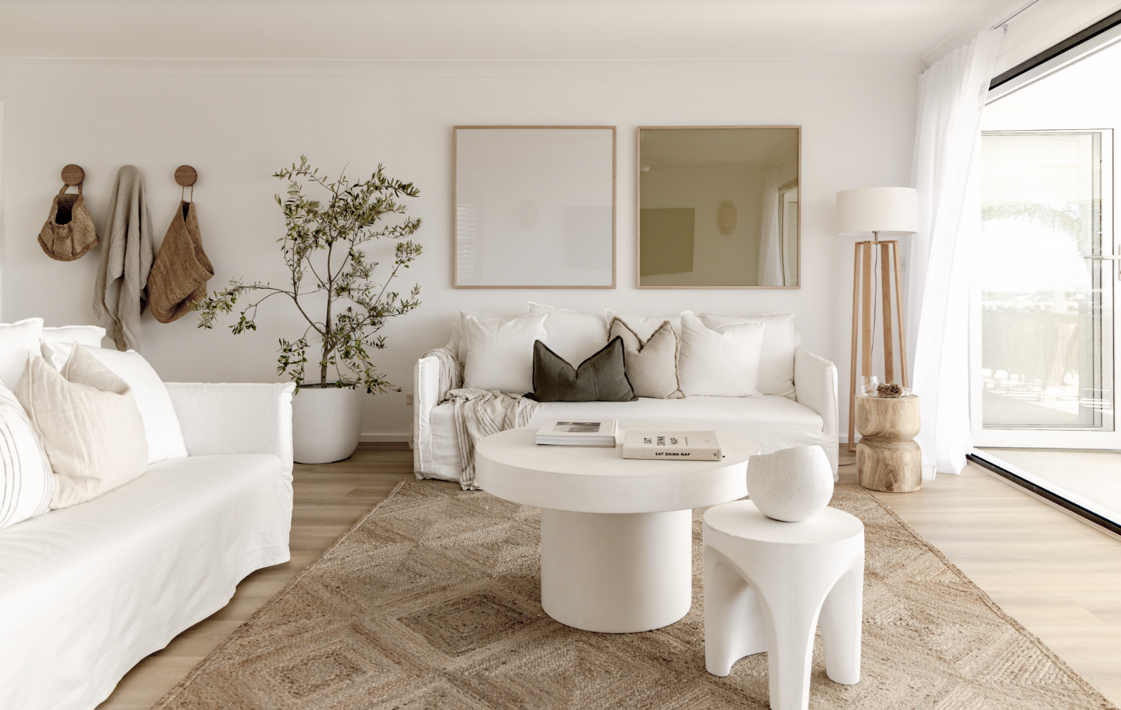 Warm whites and creams – Think sun-bleached stone and weathered driftwood