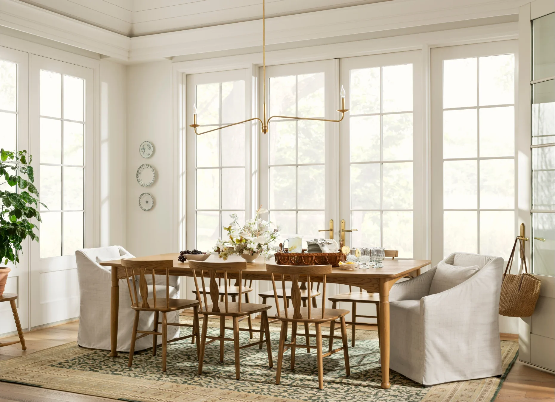 In dining rooms, your rug should extend beyond your table on all sides. This ensures that when people pull out chairs, they're still on the rug, not half on-half off.